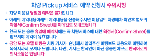 °øÇ׿¡¼ È£ÅÚ ¶Ç´Â È£ÅÚ¿¡¼ °øÇ×±îÁö Â÷·®°ú ±â»çºÐÀÌ ÆíÇÑÇÏ°Ô ¿øÇϽô ȣÅÚ±îÁö ¸ð¼Å´Ù µå¸®´Â ¼ºñ½ºÀÔ´Ï´Ù.À̿밡´É½Ã°£Àº 08:00~20:00À̸ç,À̿ܽð£Àº Ãß°¡ºñ¿ëÀÌ ¹ß»ýµË´Ï´Ù